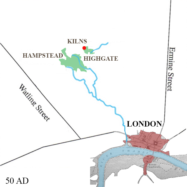 From around AD 50, Roman potters operated a kiln complex, supplying nearby Londinium with domestic wares.
